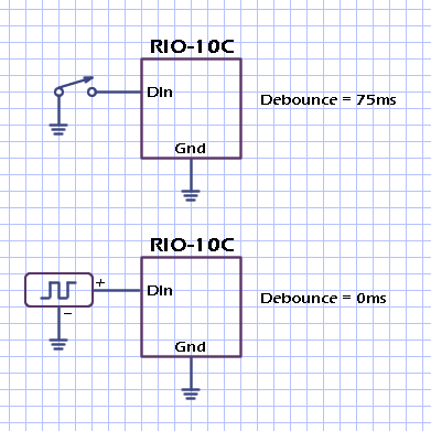 Use a Debounce value of 75 for mechanical inputs and a Debounce value of 0 for digital inputs.